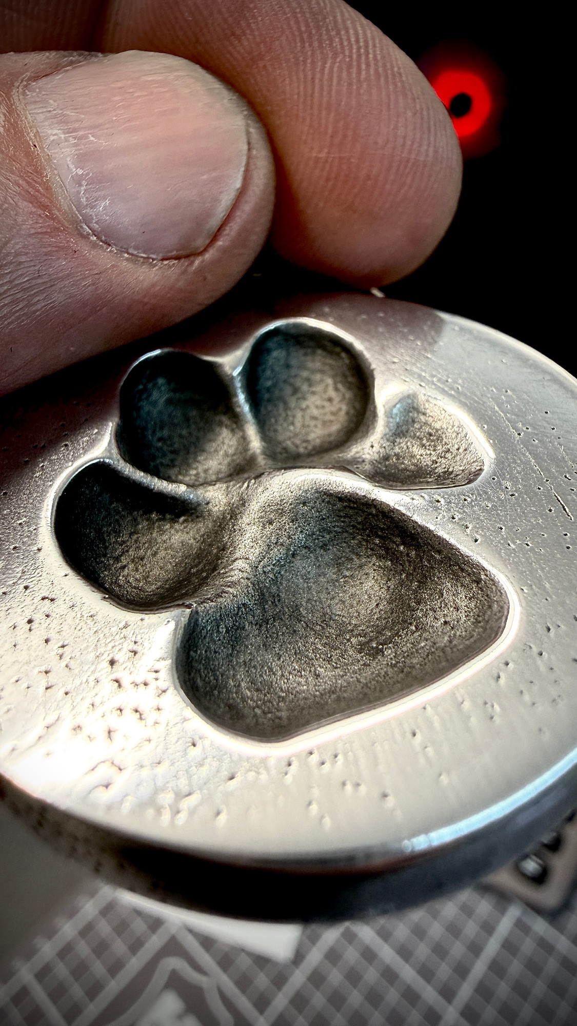 Wir fräsen deine Schnalle komplett aus einem vollen Aluminiumblock. Das ist eine Alternative zum Guss, je nach Motiv, Optik und gewünschter Oberfläche.